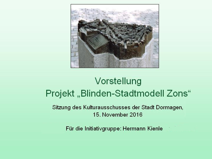 Projekt 'Blinden-Stadtmodell Zons' - Kulturausschuss 15. November 2017 - Folie 1