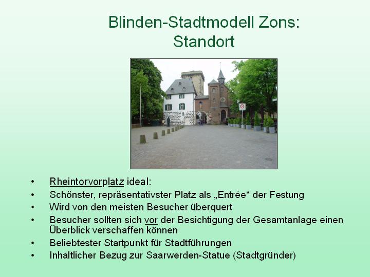 Projekt 'Blinden-Stadtmodell Zons' - Kulturausschuss 15. November 2017 - Folie 7 [Vorherige] [Nächste] Folien: [1] [2] [3] [4] [5] [6] [7] [8] [9] Drucken: Schließen